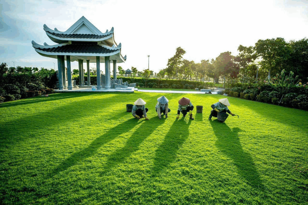 Đội ngũ chăm sóc cảnh quan luôn túc trực hằng ngày, giữ cho hoa viên luôn xanh, sạch, tươi mới quanh năm, để mỗi lần con cháu đến viếng, lòng lại thấy an yên và tự hào.